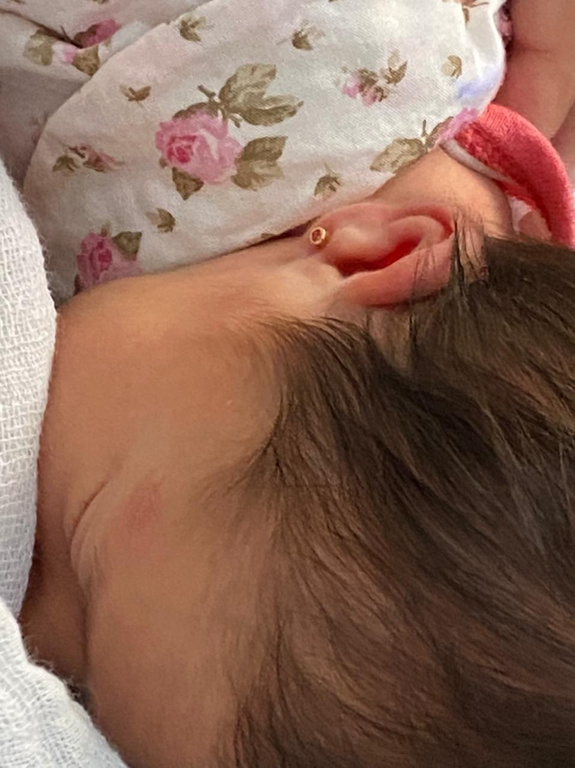 Laserterapia no furo de orelha antes e após